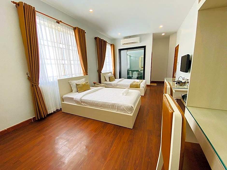 Indulge in luxury with a spacious Deluxe Apartment offering 1076 sqft, two King size beds, a kitchen, river view, and a terrace. Perfect for four adults seeking comfort and elegance.