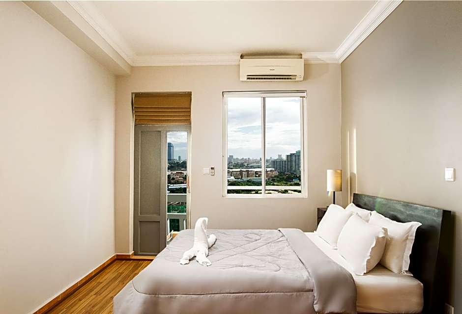 Spacious 1076 sqft Superior Apartment with two King size beds, offering stunning views of the garden and river. Enjoy luxurious amenities including a bathtub, balcony, and access to a kitchenette, perfect for accommodating up to 4 adults.